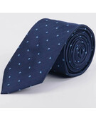 Галстук напрокат синего цвета в фактурную полоску и двухцветным квадратным узором для мужского костю