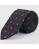 Коричневый галстук в аренду с голубым цветочный и оранжевым квадратным узором для мужского костюма