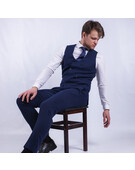 Аренда мужского костюма с двубортным жилетом темно-синего цвета Изысканный и элегантный, наш мужской костюм темно-синего цвета с двубортным жилетом является вершиной мужского стиля и изящества. Этот высококачественный комплект одежды подходит для разли...