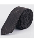 Аренда узкого фактурного галстука темно-коричневого цвета с белым точечным узором для мужского костю
