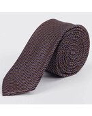 Аренда узкого галстука оранжевого цвета с черно-синим узором для мужского костюма