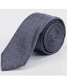 Прокат узкого галстука светло-серого цвета в полоску с бело-голубым точечным узором для мужского кос