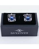 Аренда запонок прямоугольной формы и вставкой синего цвета для мужских костюмов