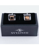 Аренда запонок прямоугольной формы с оранжевыми вставками