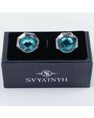Аренда запонок с зелено-голубой вставкой для мужских костюмов