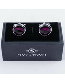 Аренда запонок круглой формы и вставкой пурпурно-розового цвета для мужского костюма