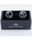 Аренда запонок круглой формы с черными вставками для мужских костюмов