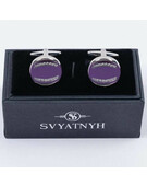 Аренда запонок круглой формы с пурпурно-фиолетовой вставкой для мужских костюмов